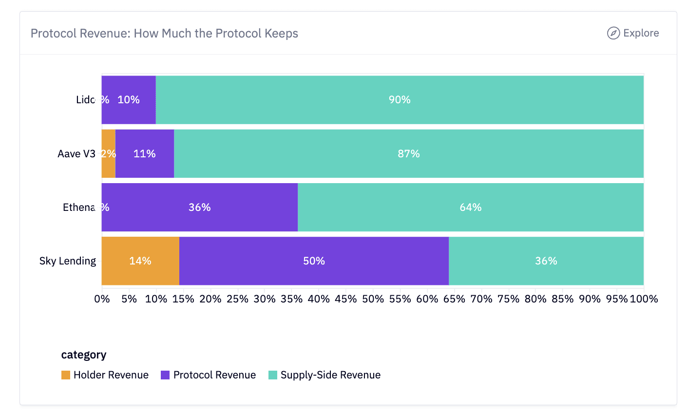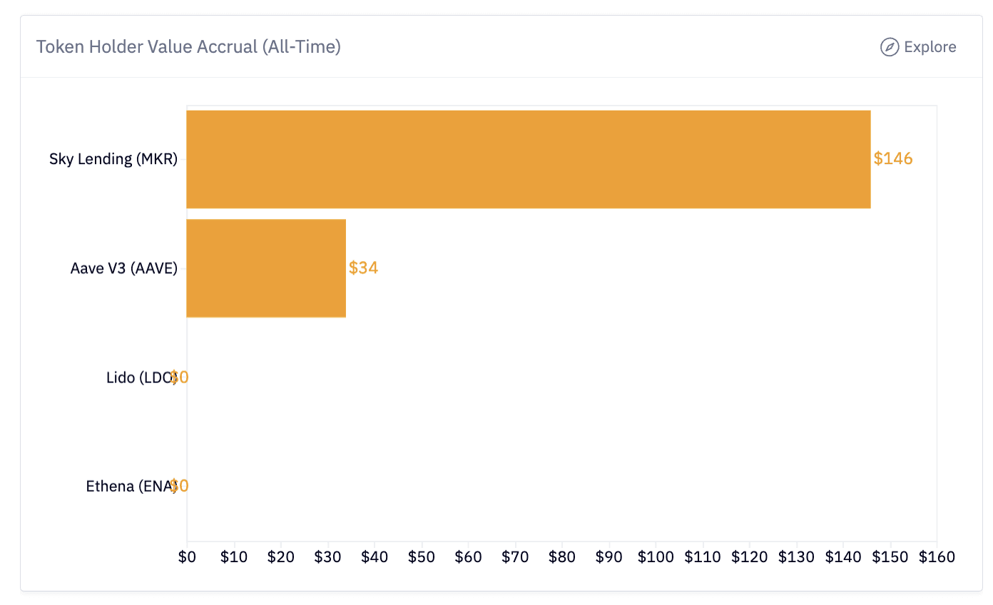 Sky Lending (MakerDAO) captures 64% between protocol (50%) and holders (14%)