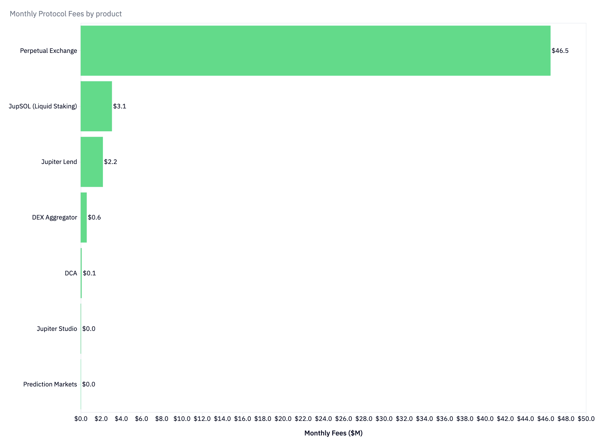 The perpetual exchange generates $46.5M in monthly fees (80% of total protocol revenue), while the aggregator contributes through MEV capture and routing optimization