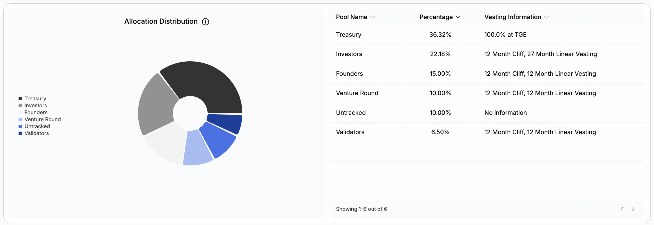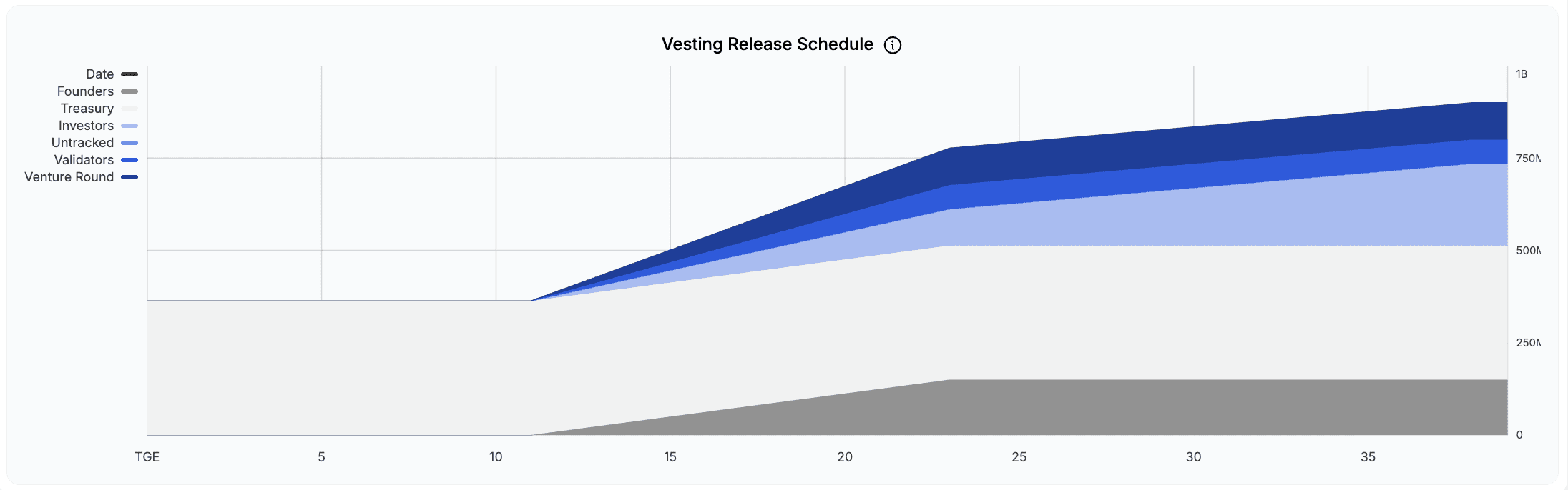 The vesting schedule has successfully completed across all major allocation categories, including Team and Validators (40.04%), Investors (34.61%), and DAO Treasury (25.35%). This completed vesting reduces sell pressure from early participants and provides more stability for long-term holders.