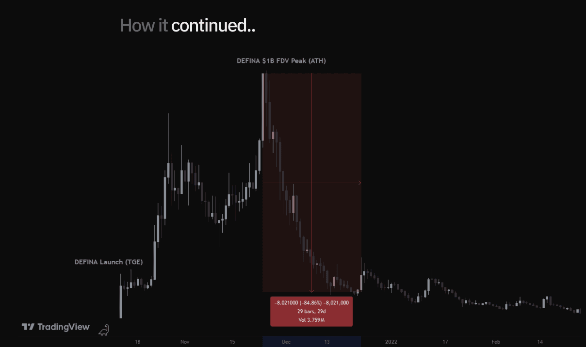 Defina Finance is a textbook case of how low float and high FDV can wreck a project, fast.