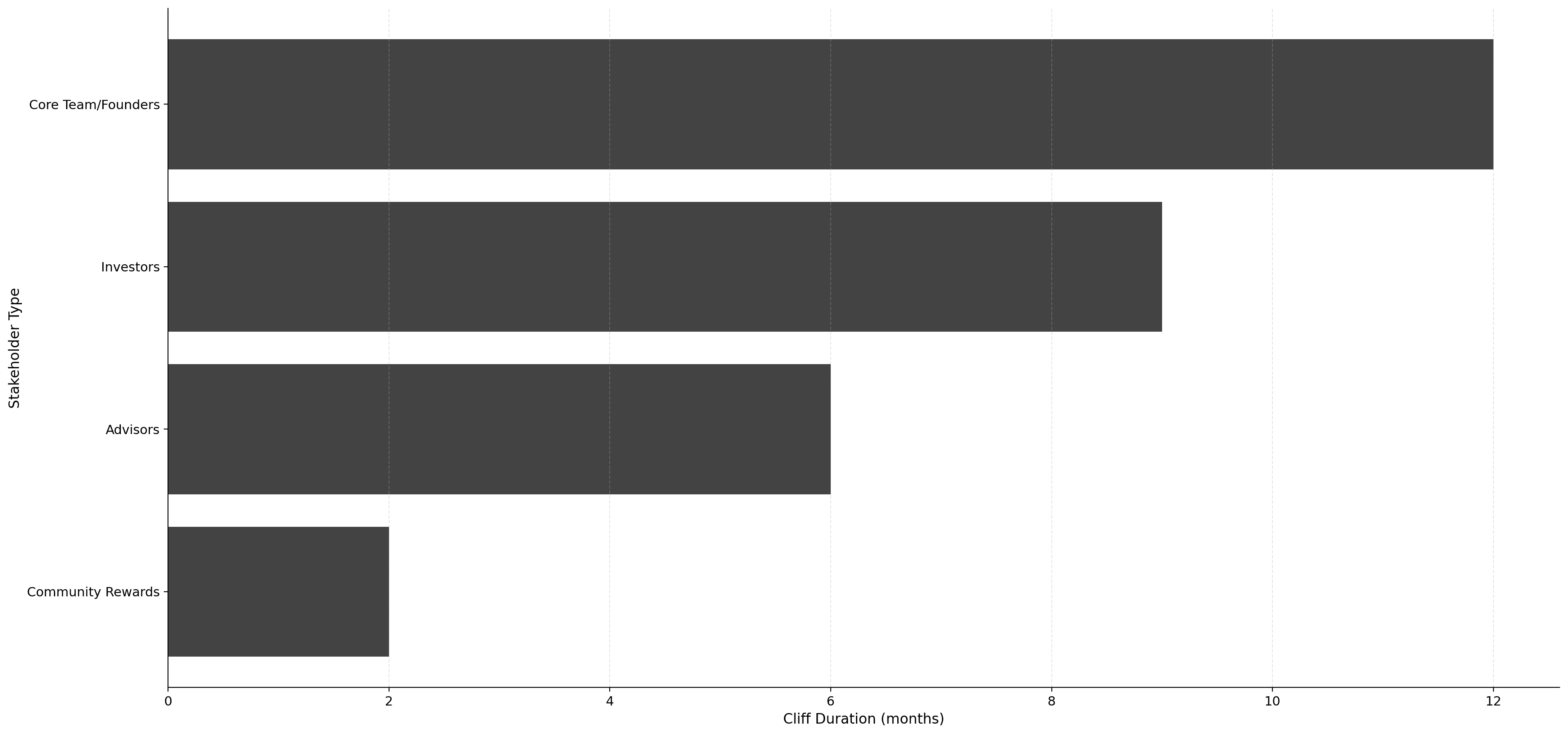 The waiting period before any tokens unlock. Industry benchmarks by stakeholder type:
